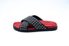 Il fondo del sandalo è realizzato in gomma, per garantire una maggiore aderenza e flessibilità durante la camminata, riducendo il rischio di scivolare su superfici bagnate o scivolose. La suola in gomma avrebbe una struttura antiscivolo, con una serie di incavi o righe che garantiscono una presa salda al suolo.